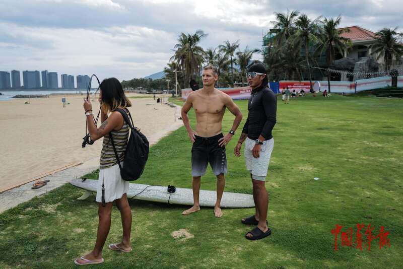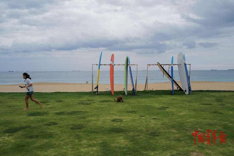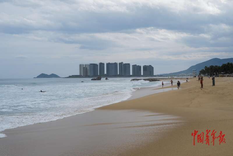 9月24日,海南省万宁市,海边的人们。据介绍,目前当地计划构建集专业训练、大众体验、装备制造、赛事运营于一体的全产业链生态,规划建设国际体育产业园,重点引入冲浪板、动力冲浪板等装备制造企业。中青报·中青网记者 赵迪/摄
