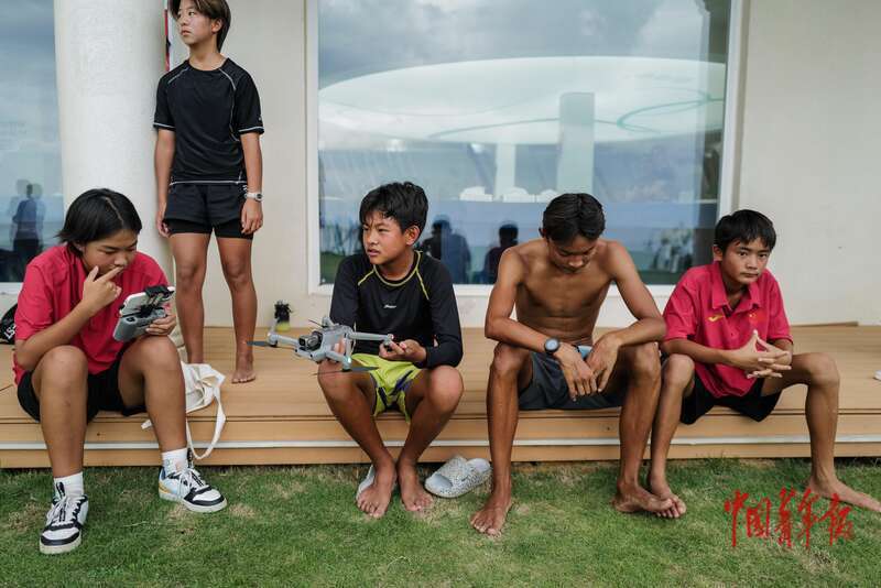 9月24日,海南省万宁市,海边等待冲浪训练的孩子们。中青报·中青网记者 赵迪/摄